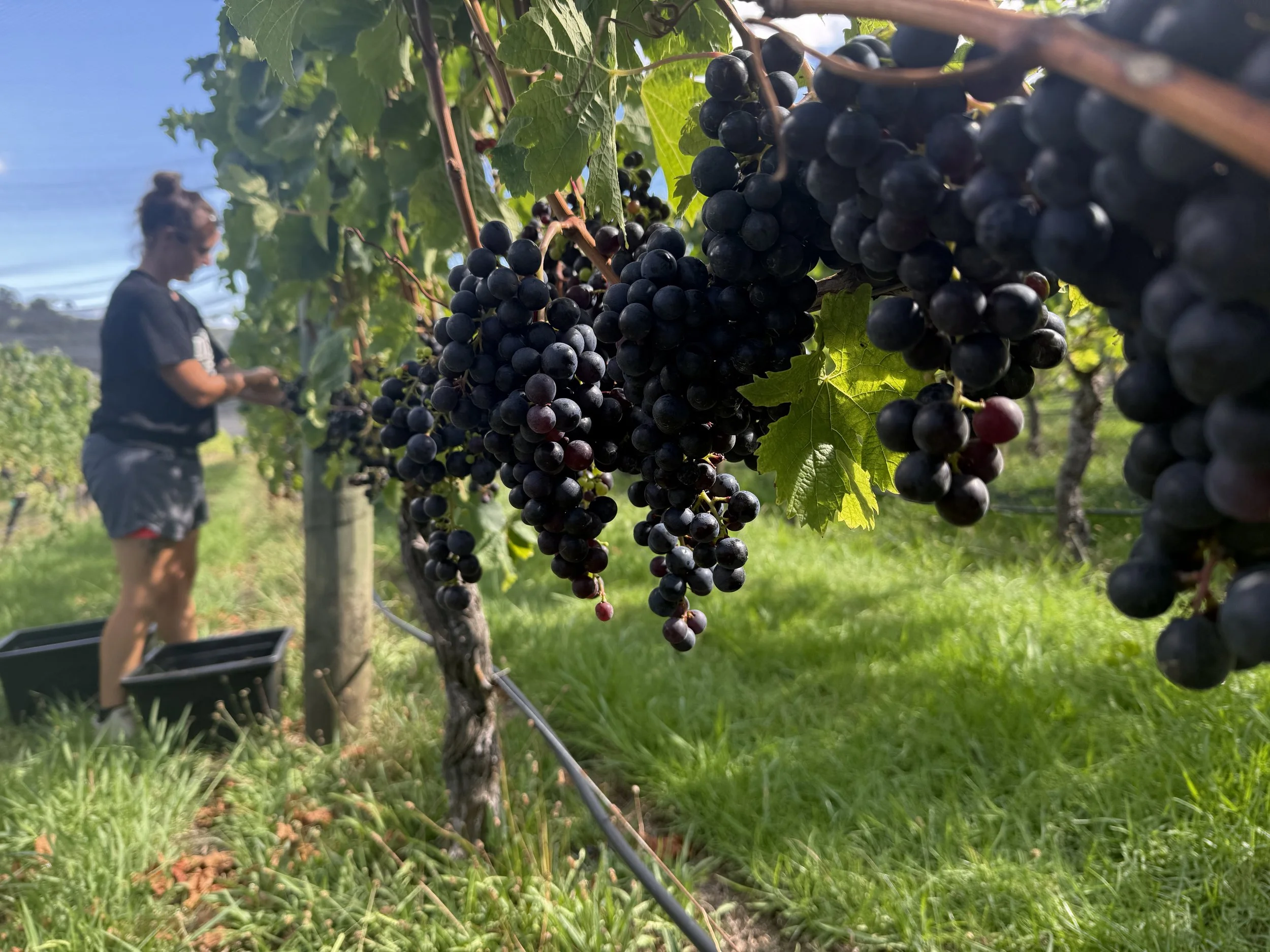 All our grapes are carefully handpicked off our small vineyard. After harvest you’ll find an eclectic mix of sheep, alpacas and donkeys mowing around the vines.